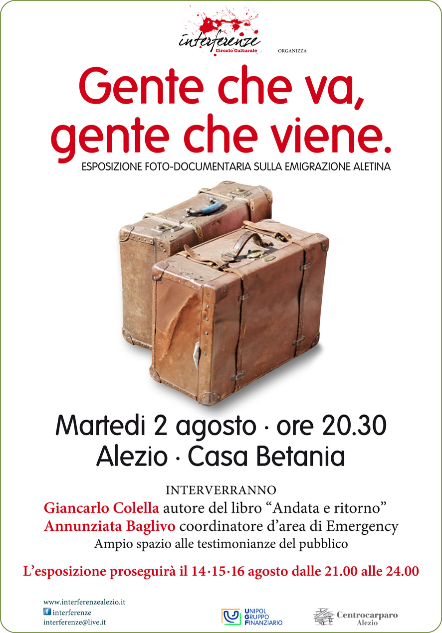 Relatori: Giancarlo Colella (Autore del libro “Andata e ritorno”); Annunziata Baglivo (Coordinatore d’area di Emergency)
