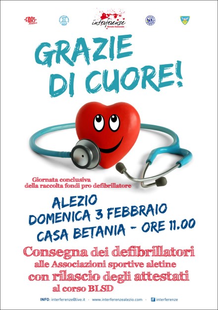 A conclusione della raccolta fondi pro defibrillatore, nella giornata di domenica 3 febbraio 2013 sono stati consegnati ben due apparecchi, acquistati grazie alla generosa collaborazione di molti.