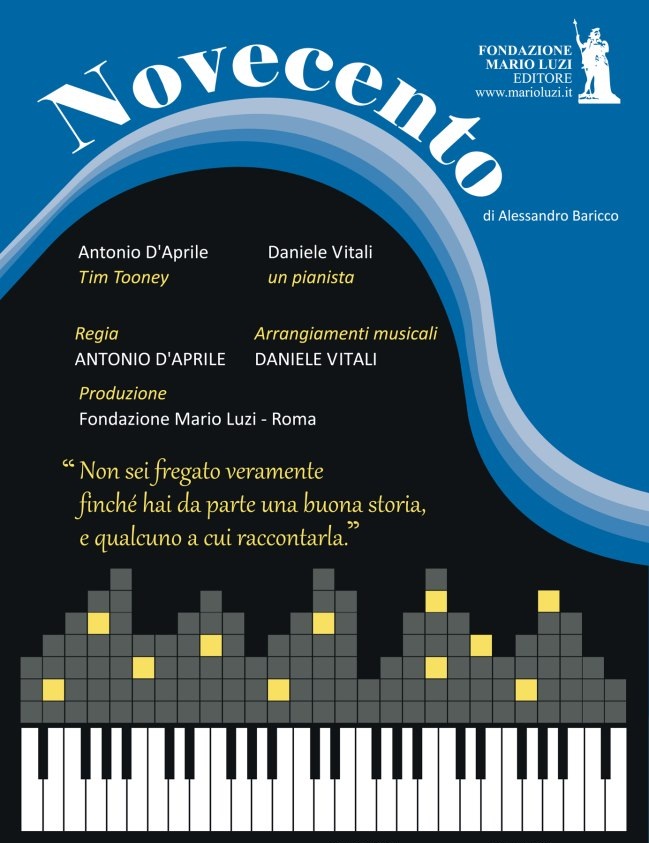 Il 12 marzo 2013 andrà in scena “Novecento”, tratto dal romanzo di Alessandro Baricco, con Antonio D’aprile nella doppia veste di regista e interprete, accompagnato al pianoforte da Daniele Vitali. Un racconto che incanta, una musica senza tempo e senza confini, magistralmente eseguita dal vivo, per conoscere la vita di un uomo, comprendere le sue scelte e imparare a guardare, insieme a lui, il mondo, dalla scaletta di una nave.