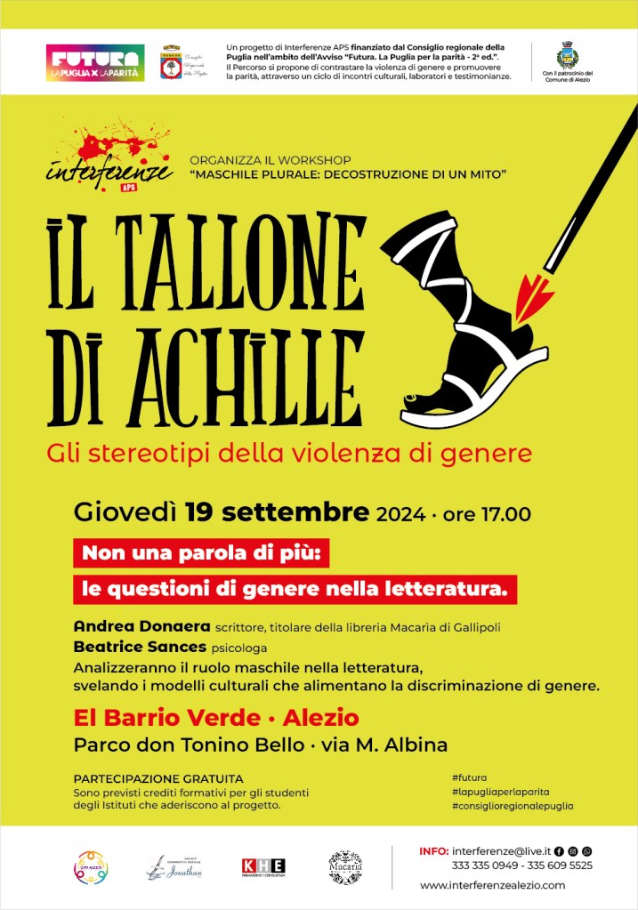 Attività promossa e finanziata dal Consiglio regionale della Puglia nell’ambito dell’Avviso “Futura. La Puglia per la parità. 2° ed.”. Con il patrocinio del Comune di Alezio.
